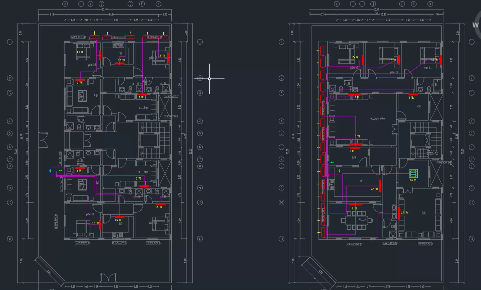 Brief: This residential villa is designed based on a split unit system in which each room is connected with its own cooling outdoor unit using refrigerant pipes as shown in the drawing above.
